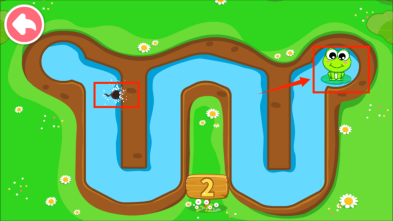 2、捉迷藏模式的玩法是,孩子要帮助小蝌蚪找到它的青蛙妈妈。
