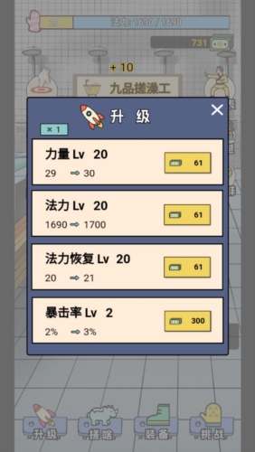 3. 需持续拓展店铺的规模,可通过消耗游戏内的金币来增添更多搓澡床位。
