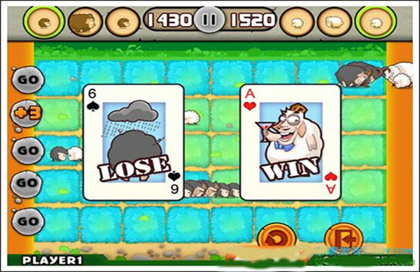 2在策略模式里,设计场景类似于对决赛场,点击上下两行的“GO”字样,就能释放顶栏上翠绿色圆圈中准备好的小羊们。规则是大羊战胜中羊,中羊战胜小羊,玩法类似拔河比赛,比拼双方羊的力气大小,成功抵达对方阵营的羊可获得分数,最终统计分数高低,分数多的一方获胜。