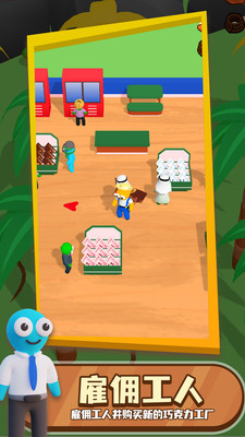 在我的巧克力店游戏里,玩家能拥有一家专属的巧克力工厂。你可以招募更多员工协助管理,努力收集大量可可来制作巧克力,再经过包装售卖环节,以此赚取收益。