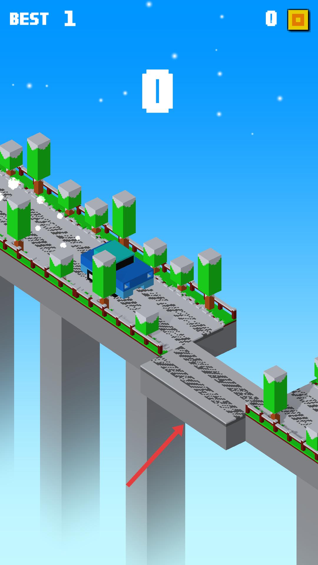 2、游戏里,当车辆行驶到断桥位置时,要在恰当的时机点击屏幕,使车辆完成跳跃以跨过断桥,同时得掌控好节奏,防止车辆坠落,从而不断向前推进距离。