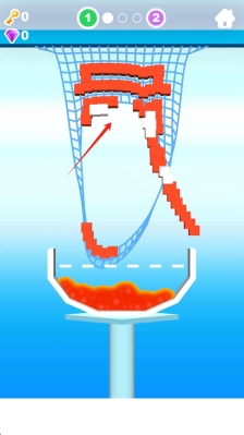 2、在关卡里留意红色方块的布局,通过巧妙的操作,使方块精准落入容器以完成关卡,操作方式为滑动切割。