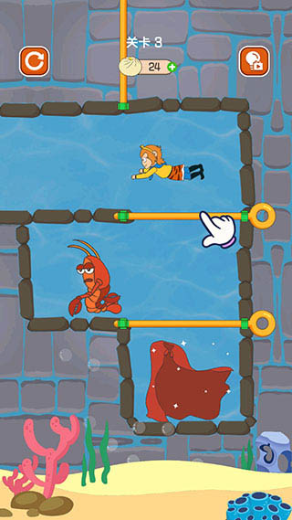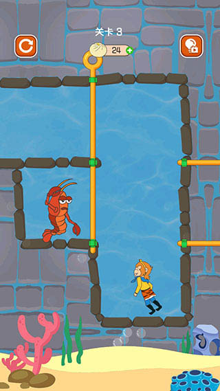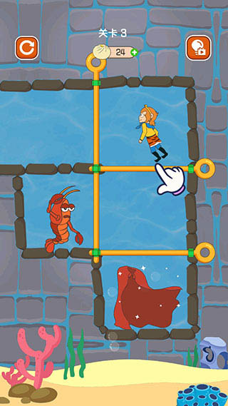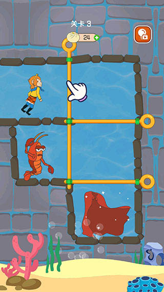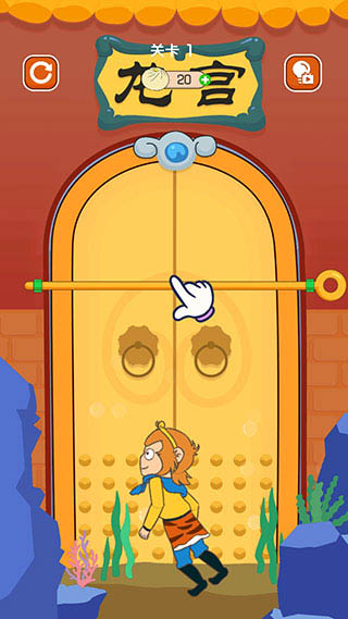 5、第三关拉开竖向的拉杆后,龙虾和孙悟空都会开始移动。
