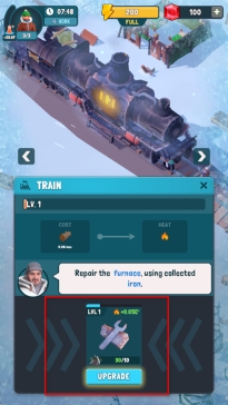 3先把熔炉修好,接着进入火车的升级界面,再依据手里的资源情况和实际需求,点击升级按钮,以此来提高火车的各项属性,从而让它在冰雪环境中的生存能力得到增强。