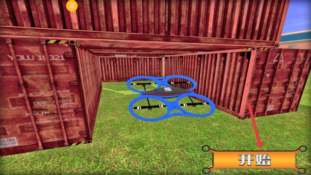 1进入佳作界面后,可看到蓝色无人机位于红色集装箱搭建的区域内,点击界面右下角的开始按钮,就能启动后续操作。
