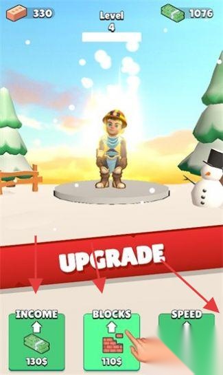 2投入资金对“收益”“砖块”“速度”模块进行升级,以此提高建塔的效率和获得的收益。