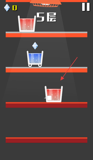 4游戏中需关注五层结构,控制蓝色容器接住钻石,使红色容器到达目标位置。
