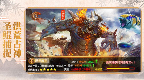 3培养专属于你的远古神兽,通过多种方式助其吞噬进阶、不断成长,从而为你提升更强大的战斗能力;多样精彩激烈的竞技对决,将为你带来极致畅快的游戏体验。