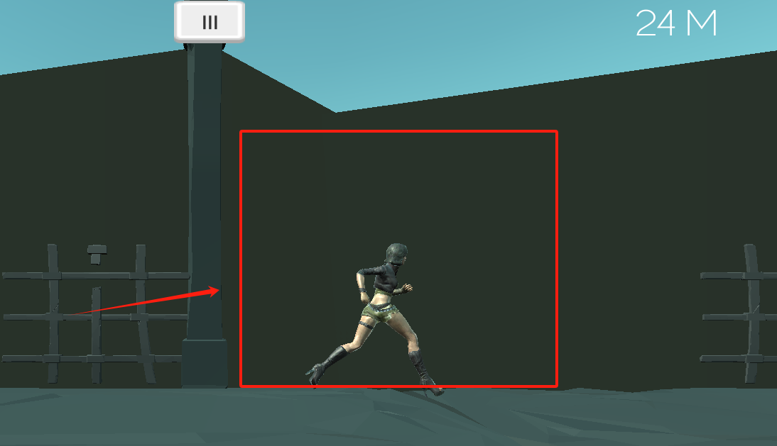 2、画面呈现角色奔跑状态,右上角设有24M倒计时,红色方框提示玩家需操控角色躲避障碍物以抵达终点。
