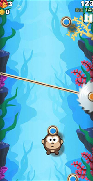 1、弹射金刚的玩法比较简单,初始状态是一只猴子吊挂在某个木桩上,你只需调整好合适的弹射方向,就能让它成功转移并吊挂到其他木桩上。不过在弹射过程中,得时刻留意那些忽隐忽现的障碍,像食人花、移动锯子之类的都得小心避开。总的来说,只要秉持着不断向上的精神去玩就对了。