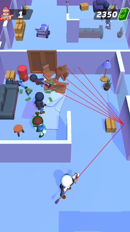 闯关时,玩家发射子弹得提前预判好子弹的弹跳轨迹,借助不同角度发射纸带,就能快速消灭敌人。每个关卡里出现的敌人实力各异,玩家必须把关卡中的所有坏人都消灭干净,才能顺利闯过这一关。