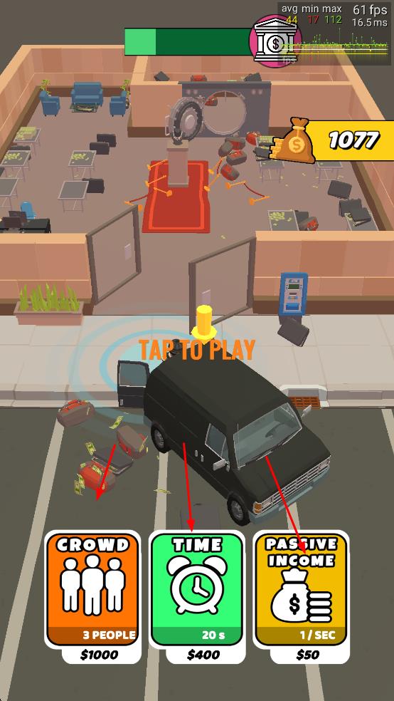 1首先找到那个写着“TAPTOPLAY”的按钮并点击,接着从增加参与人数、拉长活动时长、提升被动收益这几个选项里选一个,这一步是启动抢劫行动前必须完成的核心步骤。