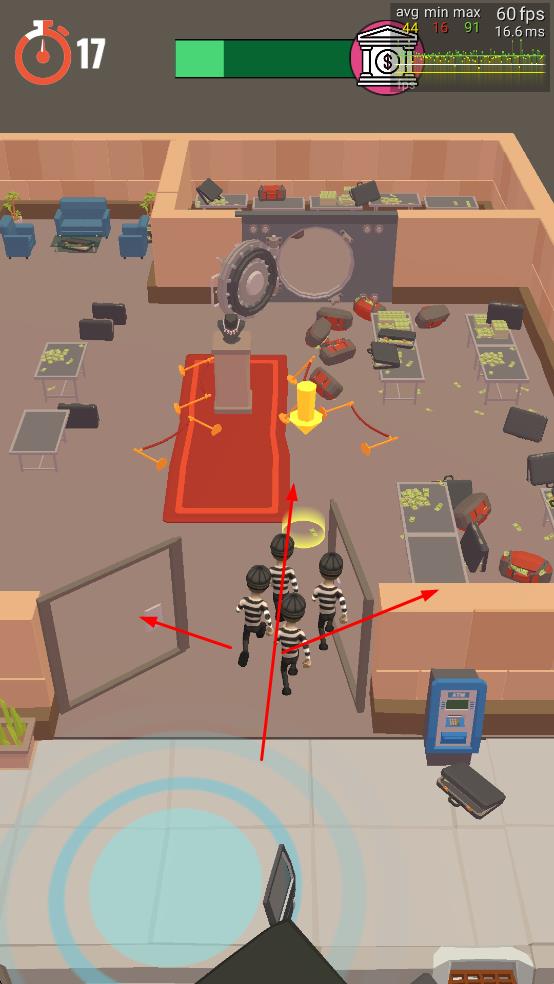 2、操控角色进入建筑,搬运散落各处的财物,注意时间限制,合理规划搬运路线,为达成抢劫目标打好基础。