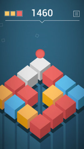 操作方式:用手指沿对角线滑动球体,球体便会向该方向移动;请尽量在空白(无任何色彩)或与球体同色的区域完成跳跃动作。若跳跃至空白区域,该区域会自动变为与球体一致的颜色。