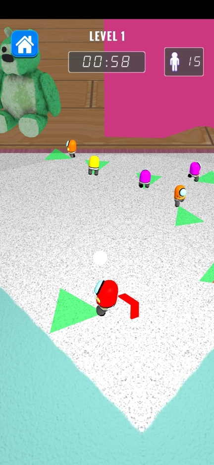 3第三关的核心机制是“一二三木头人”,玩家需要在不被察觉的情况下,以最快速度抵达终点线以赢得挑战。