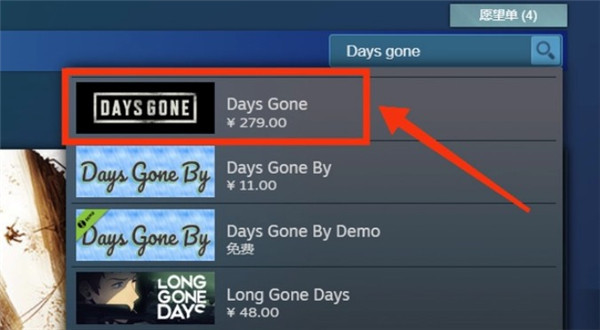 玩家若想在Steam平台找到《往日不再》这款游戏,需通过搜索其英文名来实现。具体操作是打开Steam商店页面,在搜索框内输入该游戏的英文名“Days Gone”,这样就能在搜索候选结果中看到《往日不再》了。