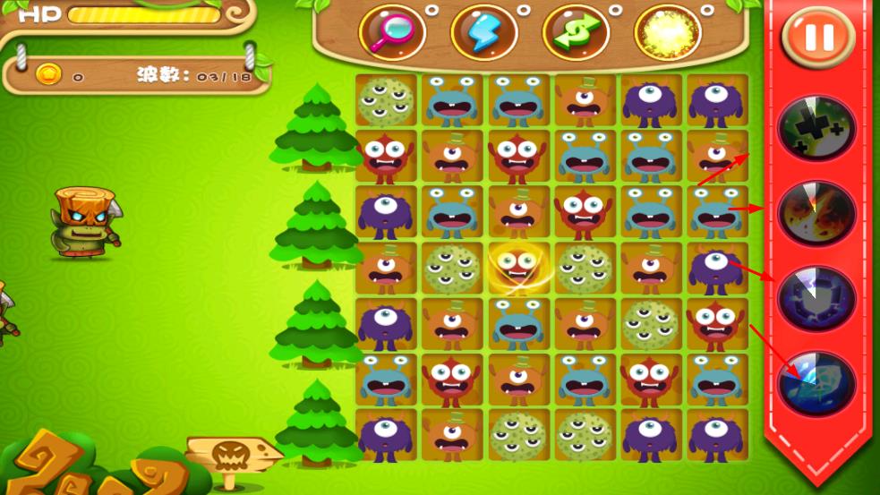 1通过匹配并消除相同的怪物图案方块,可生成用于攻击对手的能量,以此逐步达成关卡波数的推进要求。