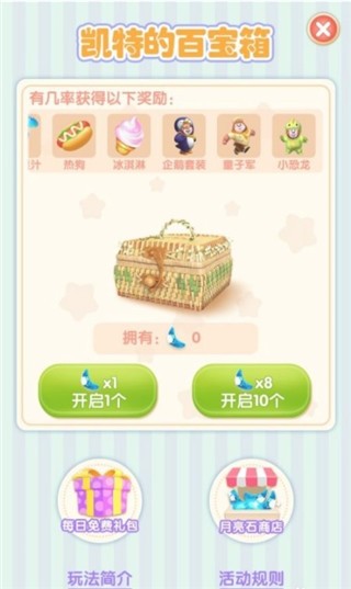 6通过专属道具月光晶核能够解锁神秘宝匣,单次开启宝匣需消耗1枚月光晶核,也可使用8枚月光晶核一次性开启十次宝匣。开启后有机会随机获取萌熊天地主题装饰、毛绒玩伴、美味点心、闪耀金币等多样奖励。