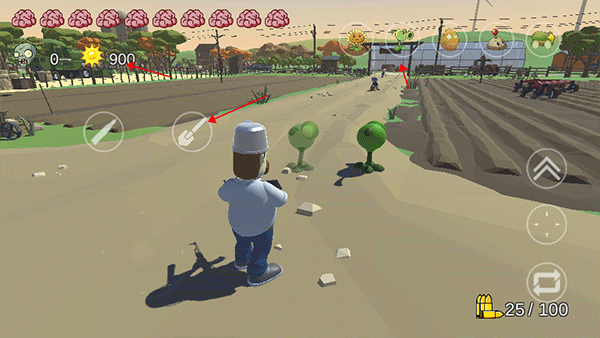 3、当僵尸出现时,你可以点击右上角的植物进行选择,接着点击铁锹就能完成种植,每种植一株植物都会消耗阳光,玩法和塔防版类似。