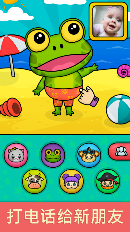 3在沙滩这类场景里,孩子们可以点击不同的角色头像,和可爱的卡通形象进行互动,从而知晓每个角色的独特之处,逐步提升自己的社交认知能力。