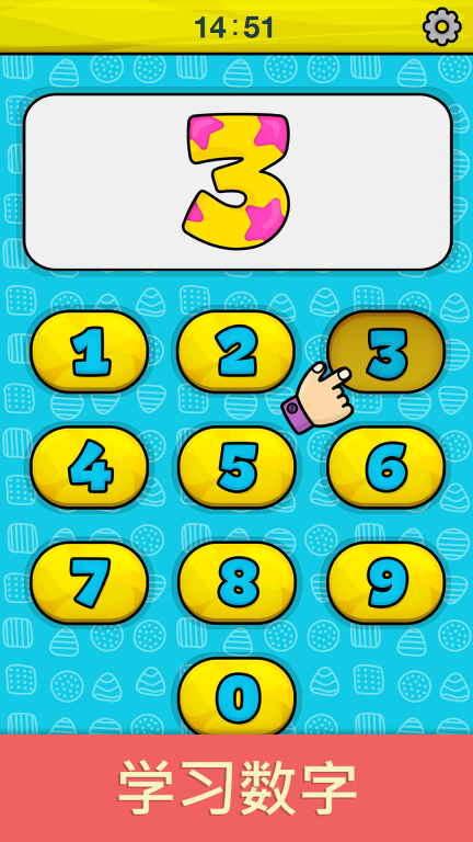 1、玩家点击数字按钮,与屏幕上呈现的数字展开互动,从而熟悉数字的形态、发音与排列顺序,提升数字认知水平。
