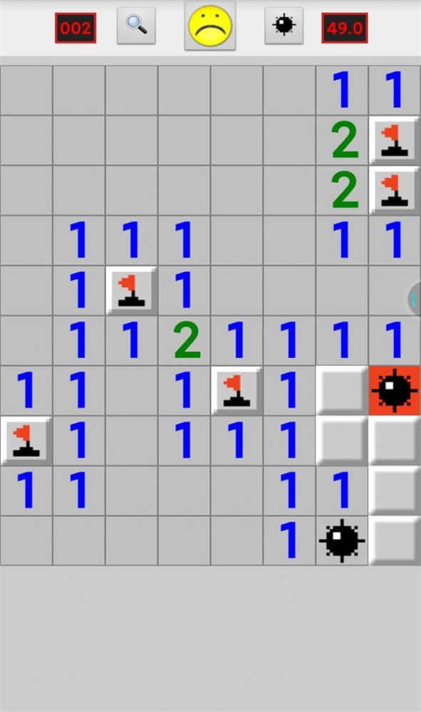 3当玩家把所有隐藏的爆炸装置都找出来时,这局游戏就会结束,同时呈现出玩家最终获得的分数。要是玩家在游玩过程中不小心碰到了地雷,游戏会马上终止,并展示出当前的得分情况。