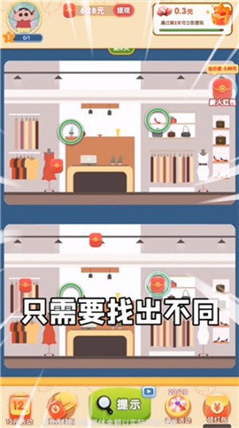 1、在规定时间里,找出左右两张图的不一样的地方,找出速度最快的玩家能得到奖励