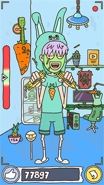 当左侧的指示标滑动至蓝色安全区时,轻触屏幕就能让意面断开;每次成功断开都能收获点赞,攒下的点赞可以用来翻新这间破旧的屋子,而左上角的红心则代表着剩余的生命次数。