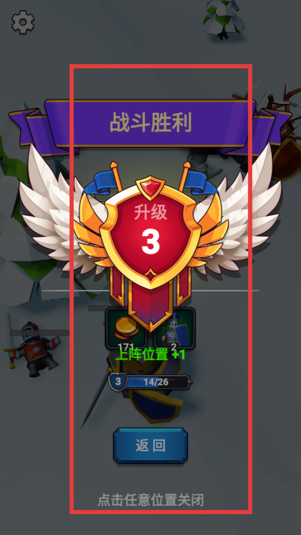 2、胜利奖励机制:战斗取胜后,玩家能获取金币,还有弓箭手、剑手这类职业的专属碎片。金币可用于商店购买物品等后续养成环节,而职业碎片则是专门用来提升对应兵种各项属性的材料。