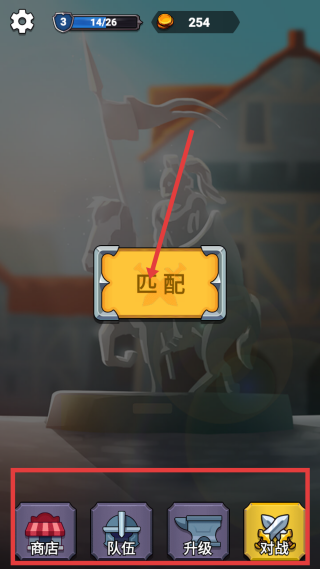 1在游戏的初始页面,点击用于寻找对战对象的按钮即可开启匹配流程;同时,页面下方设有多个功能入口,可分别完成道具选购、阵容调整、能力强化等赛前筹备事项。