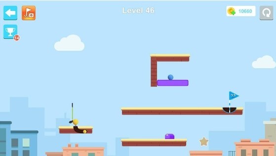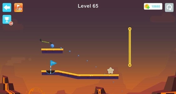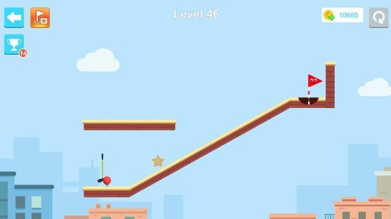这是一款以高尔夫为主题的趣味闯关游戏,玩家将扮演技艺精湛的球手,在充满创意的关卡中,通过巧妙控制球杆,利用地形和物理反弹原理,将小球精准送入目标区域,完成一系列富有挑战性的任务。每个关卡都设计了独特的地形与障碍,需要玩家仔细观察、策略规划,才能找到最优的击球路线。