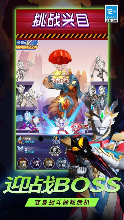 1. 切换游戏里的奥特曼角色开启挑战,体验精彩游戏世界的对战乐趣
