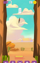3、投出的飞刀不能碰到滚木上已有的飞刀,不然游戏就会结束。