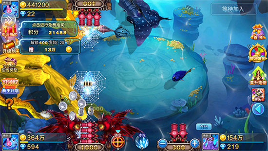 欢乐捕鱼,新捕鱼多样技能,多种炮台,丰富玩法;