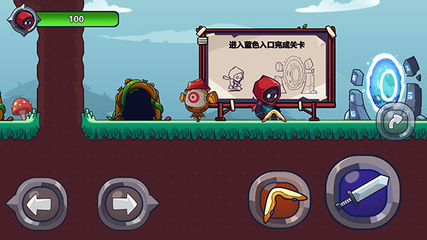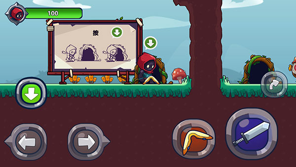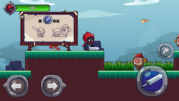 右下角的剑按钮是攻击键,是近战攻击的绝佳武器,可以用稻草人试试威力;