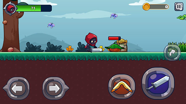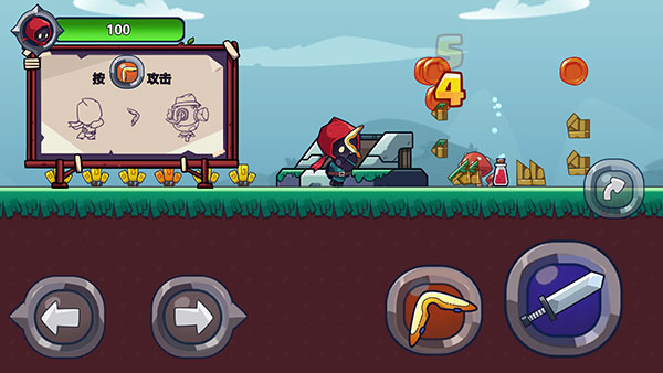 剑的左边是飞镖,可以在水平方向内来回飞,远程攻击力会比剑更大,当你打败敌人后,会有金币可以拾取;
