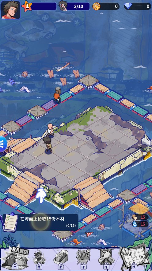 游戏无固定模板限制,玩家可自由规划建造木筏、房屋、生产设施等,逐步扩大规模,构建功能完善的海上家园,最终打造海上城镇。