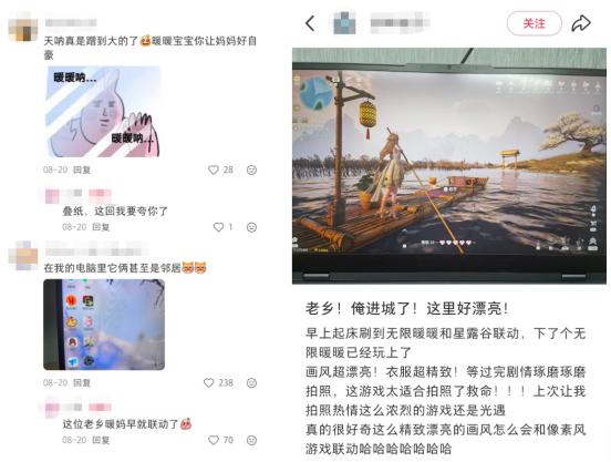 《无限暖暖》同样是内容深耕的思路。1.9 版本「音乐季」,游戏开放了自由度拉满的家园系统,并官宣与《星露谷物语》的联动,双方玩家都对此兴趣高涨,不少 " 老乡 "(星露谷玩家的自称)因为这次合作开始关注《无限暖暖》,而暖暖玩家也对这个充满种田气息的独立游戏充满好奇。