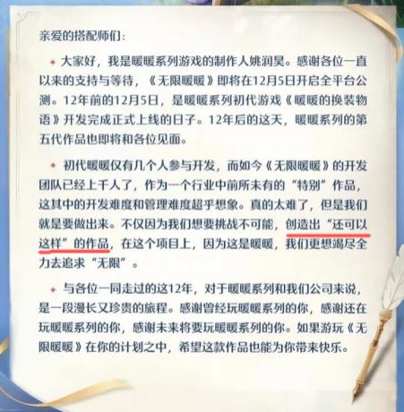 而这一切,或许都跟叠纸团队的创作执念有关。《无限暖暖》公测时," 给玩家的一封信 " 中有个表达挺戳中我的:" 要提供一个‘还可以这样’的选项。"