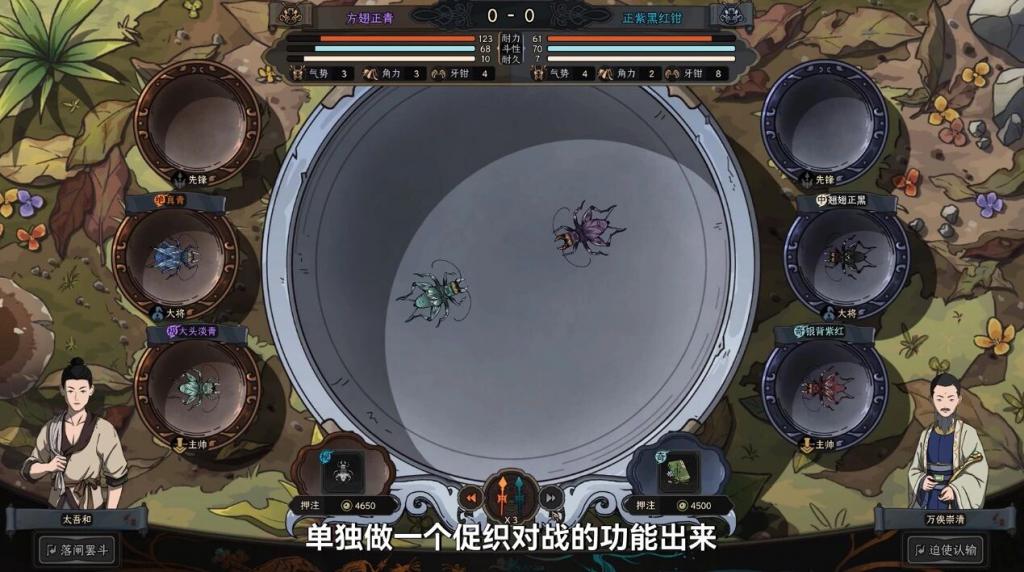 熟悉游戏的玩家应该知道,《太吾绘卷》里有个著名小游戏 " 斗蛐蛐 ",虽然它和主线剧情无关,但自身系统和数值完善,考据优秀,创意新颖,存在诸多收集、战略要素,蛐蛐亦有种类、能力值、技能等信息区分。有不少玩家一度专精 " 斗蛐蛐 ",甚至连主线内容都无暇推进。