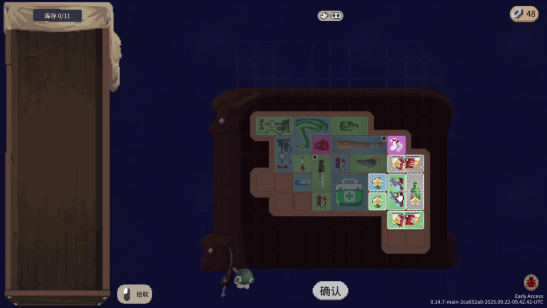 游戏内所有武器和道具都以类似俄罗斯方块的形态占据背包格数,玩家需要精心旋转、堆叠和排列它们。