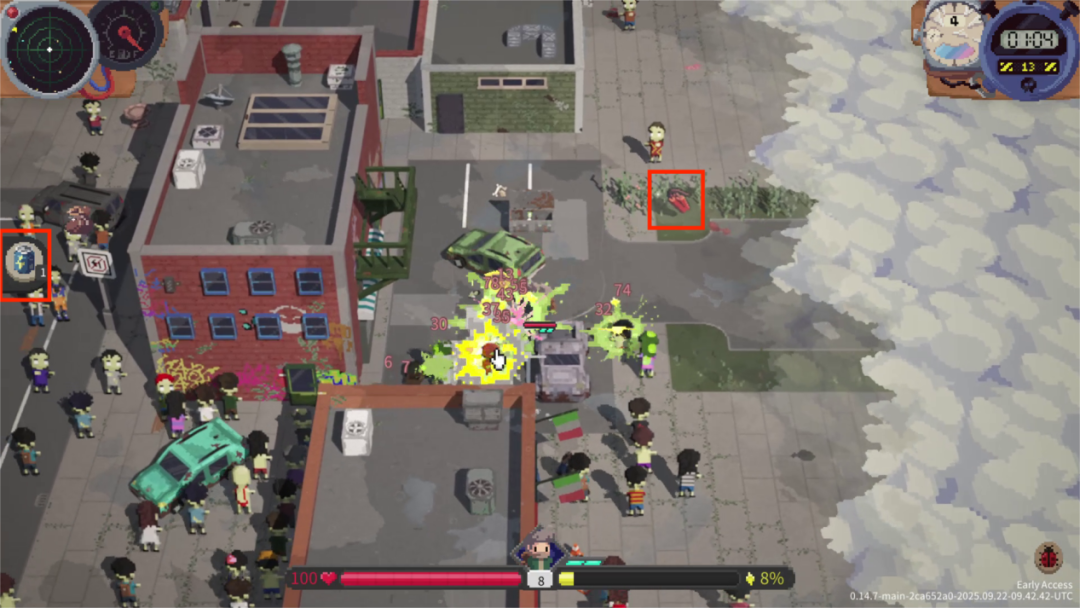 玩家仍能轻松聚焦于自身角色,快速做出判断和操作,这种“清爽感”在同类型幸存者游戏中显得尤为难得。与此同时,游戏优化表现也十分出色,即便面对满屏僵尸和大量特效,也依然能保持流畅运行,几乎感觉不到明显卡顿。