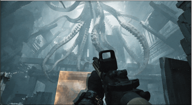 比如地图异化房间内可能有黑水罐头跳出“抱脸虫”,还可能有类似SCP-173的尾随怪。这些都会释放微恐魅力,让玩家已经很熟悉的射击因特殊环境变成全然不同的体验。