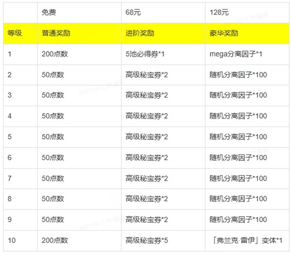 完成通行证任务提升通行证等级,解锁【星尘徽章】和【高级星空币】等奖励,若您选择购买通行证,更能解锁 Mega 分离因子、战场背景等专属奖励。