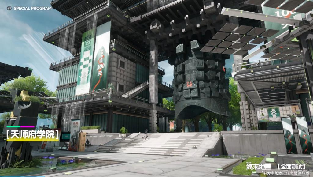 身处城外,可见白花盛开于竹林之间,山中瀑布飞泻、雾气氤氲,仿佛一幅流动的山水画;城内则遍布现代化设计与中国传统风格融合的建筑,处处透露着井井有条、一切由几何图形严丝合缝组合而成的秩序感。然而点缀其间的龙泡泡、环城跑道,以及 " 拼搏百天、天师府见 " 的宣传标语,又分明用最平易近人的烟火气,让你感觉仿佛在记忆里随手一抓便是相似的影子。