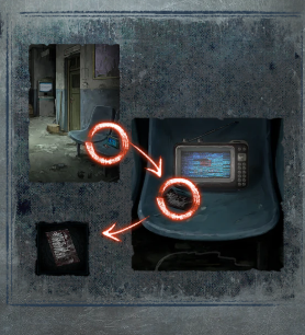 3. 踏入房间后,依据窗帘上所给的线索提示,把办公室柜门上的滑块调节至如图所示的位置,从而获取道具:锦旗、剪纸小人。