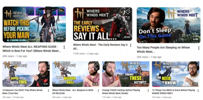 《燕云》发行相关人士告诉我,在过去一年里,有很多外国创作者原本并不了解武侠,更不了解《燕云》。但团队坚持通过邮件与各国KOL保持着良好的沟通,及时分享开发进展。发行团队与海外社区建立的长期信任关系,在发布期集中迎来了回报,众多此前建立过联系的创作者主动发布免费稿件,新手安利、深度评测、配装攻略样样都有,形成了全方位的内容传播矩阵。