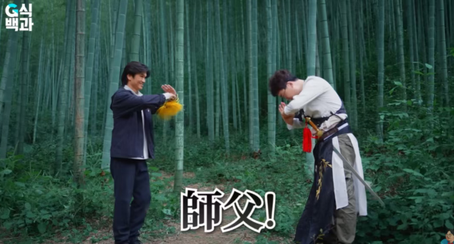 杭州的“云栖竹径”间,金成贤在武术家张继坤的指导下,学习《燕云》中的太极与剑法:“此刻的意境,如同置身《卧虎藏龙》的竹海之巅与大侠轻功对决......这就是武侠啊!”通过这番亲身体验,他对中国武侠的认知从银幕上的模糊印象,转变为了切身的感悟。