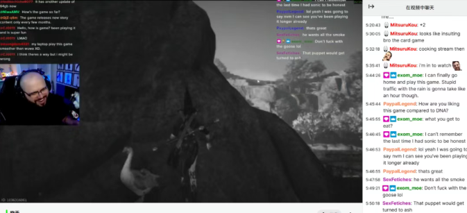 在各大海外直播平台,《燕云》中诸如村霸大鹅、悬赏海捕等独具中国特色的游戏意象体验,也为海外主播提供了源源不断的节目效果。拥有400万粉丝的YouTube主播Asmongold247(挑眉哥)从游戏开服起连续直播了四个多小时,以乐在其中的游玩表现,回击某些海外媒体的不实抹黑。