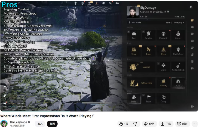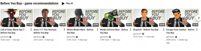 发布会后,这位以严谨客观著称的博主,主动在其栏目“Before You Buy”中制作了长达15分钟的《燕云》评测,详细地解析前瞻信息与游戏特色。虽然他并非武侠游戏受众,却在视频中对《燕云》的游戏品质给予了充分肯定。